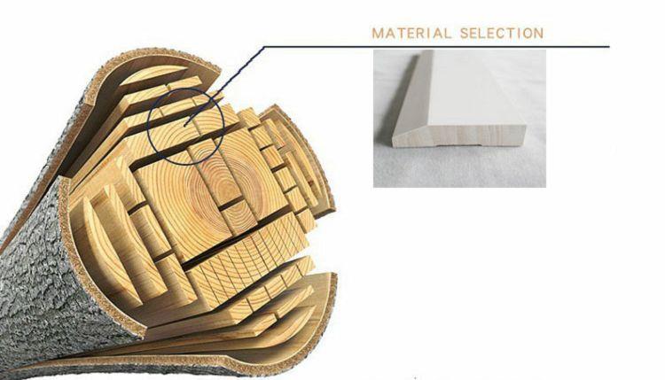 Pine Pine te fè nan New Zeland Pine Radiata. Tout materyèl bwa se klas ki klè san yo pa ne ak bwa ki defektye. Okenn nan nenpòt domaj yo pèmèt nan bòdi a fini anvan pwosesis la primin.